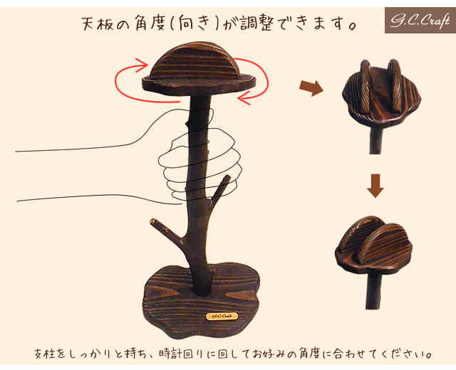 すべての帽子スタンドに、レーザーで「G.C.Craft(ジーシークラフト)」のロゴを焼き付けたプレートが付属します。