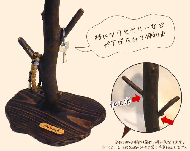 木の枝にブレスレットや鍵をかける・・・・