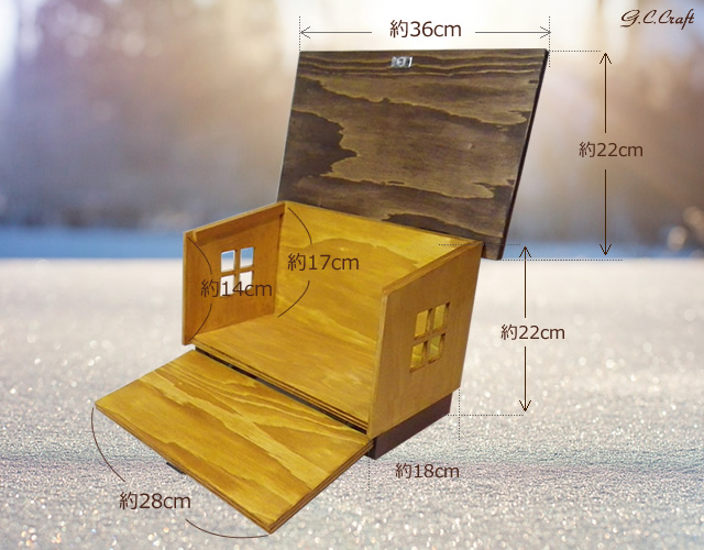 出窓とドアは開閉できませんが、山小屋風の雰囲気を醸し出しています。